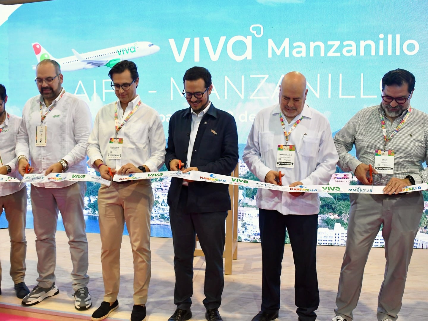 El anuncio se realizó en el stand de Colima, con la participación del subsecretario de Turismo, Jorge Padilla; Jesús Horacio González, vicepresidente de Asuntos Corporativos de Viva Aerobús; y Omar Aquiles Miranda, gerente de Conectividad y Servicios Aeroportuarios del Grupo Aeroportuario del Pacífico.