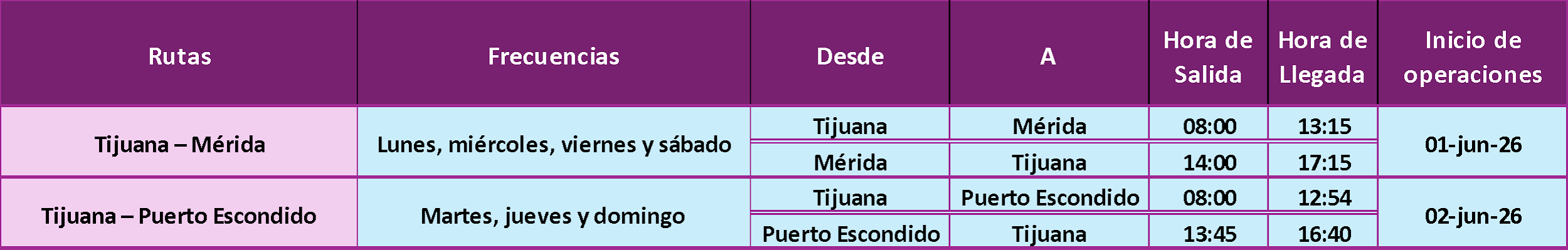 En el caso de la ruta a Puerto Escondido, su incorporación responde al interés creciente de los Clientes por contar con opciones directas hacia destinos de playa desde la frontera norte, así como al compromiso de Volaris por ampliar de manera continua su red aérea en mercados con una dinámica turística relevante.