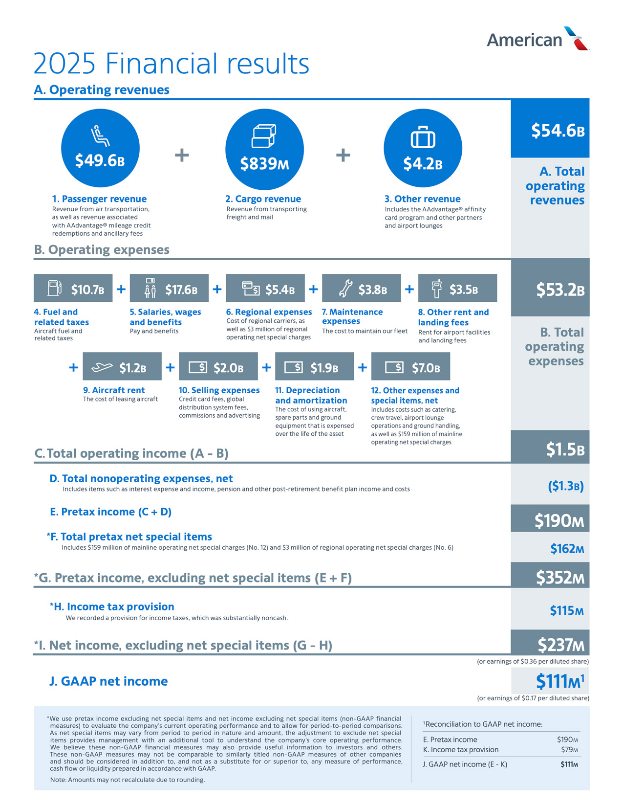 American is improving the inflight experience with the rollout of free high-speed satellite Wi-Fi, sponsored by AT&T, for AAdvantage® members starting this month. The airline also recently announced new enhancements to its mobile app to give customers real-time solutions all in one place to self-serve their itineraries for a smoother, more autonomous travel experience during irregular operations. The American team delivered a resilient operation in the fourth quarter despite disruptions from the government shutdown and severe winter weather in the Northeast and Chicago during the holiday travel period.