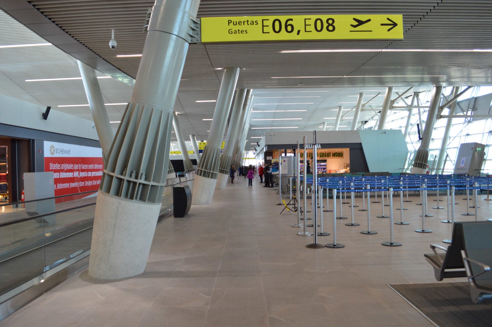 26.700 mts2 de superficie distribuidos en tres niveles, 12 puentes de embarque, 1.600 mts2 de locales comerciales y un diseño inspirado en la región de Los Lagos. Así es el nuevo espigón ‘E’ del Aeropuerto de Santiago, que permitirá aumentar la capacidad de vuelos y de atención de pasajeros.