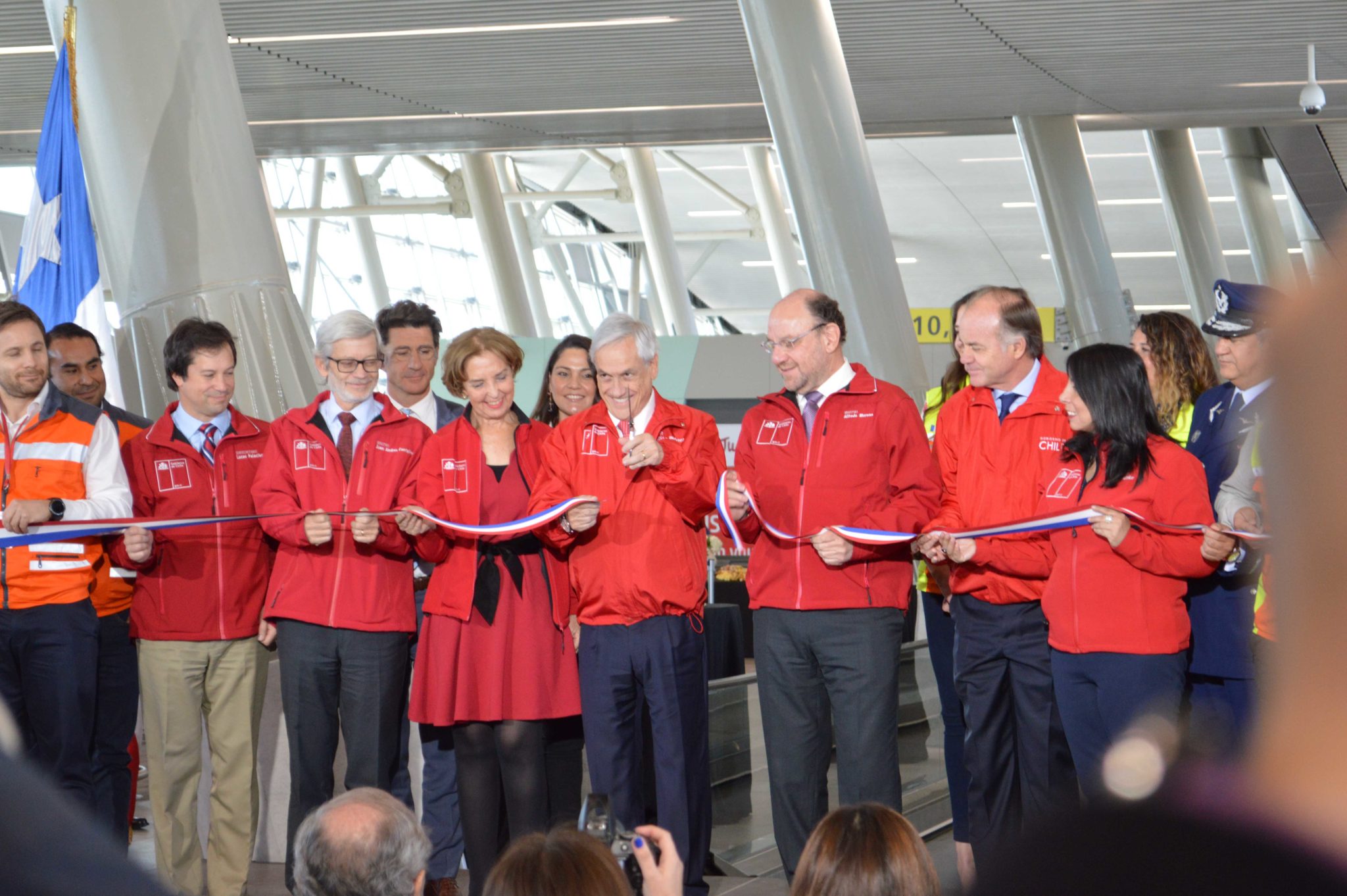 La inauguración, que se realizó este jueves, estuvo encabezada por el Presidente de Chile, Sebastián Piñera y por el Gerente General de Nuevo Pudahuel, Xavier Lortat-Jacob, y contó con la participación de los ministros de Obras Públicas, Alfredo Moreno; de Transportes, Gloria Hutt; de Economía, Juan Andrés Fontaine y de Agricultura, Antonio Walker, además de representantes de las aerolíneas e industria aérea del país.