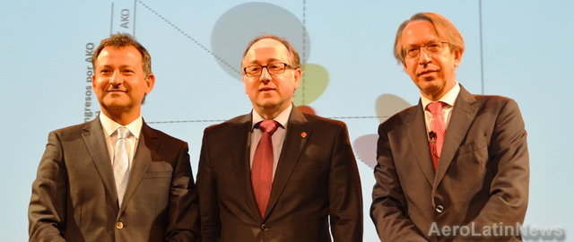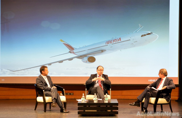 El presidente de Iberia, Luis Gallego y el presidente de la agencia informativa EFE, José Antonio Vera, entre otras autoridades, inauguraron en la Fundación Telefónica de Santiago, una muestra fotográfica que se enmarca en el inicio de las actividades con las que este año la compañía aérea, conmemorará en todo el mundo, el 70 aniversario del primer vuelo comercial entre Europa y América Latina.
