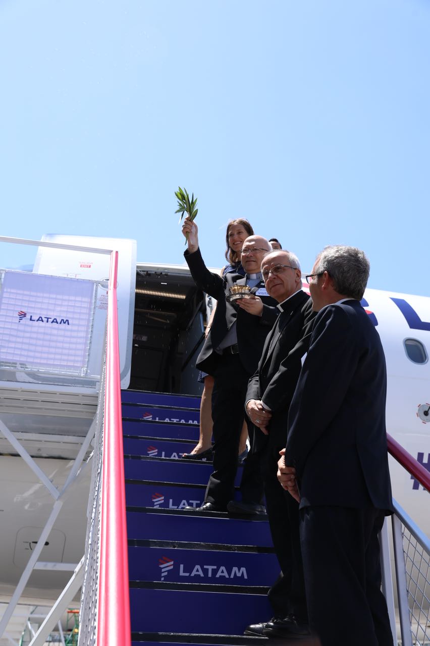 En la ceremonia estuvo presente el Nuncio Apostólico, Ivo Scapolo, el Secretario General de la Conferencia Episcopal, Monseñor Fernando Ramos, el Coordinador Nacional de la Visita del Papa en Chile; Javier Peralta y el Director de la Comisión Presidencial, Benito Baranda. Allí­ se realizó una bendición al avión que trasladará al Papa Francisco junto a toda su comitiva.