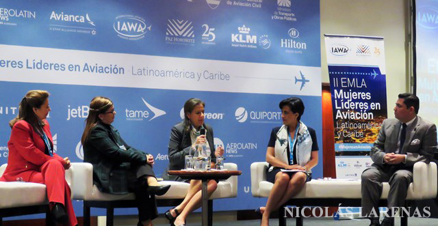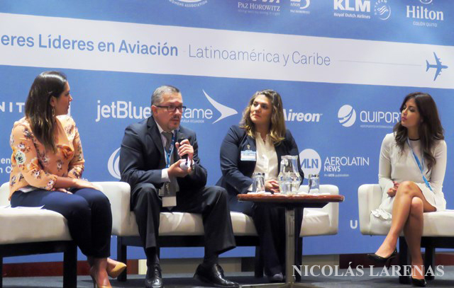 "¢ Retos y Oportunidades para la Autoridad Aeronáutica en la Equidad de Género y Empoderamiento de la Mujer en la Aviación, que contó con la participación de Luis Carrera, director general de la Dirección de Aviación Civil de Ecuador; Gianella Baltodano, sub-directora de la Dirección de Aviación Civil de Costa Rica; Alba Lucia, asesora privada de la Dirección General del Aerocivil Colombia y Carolina Ortiz, líder del departamento de aviación de Paz Horowitz.